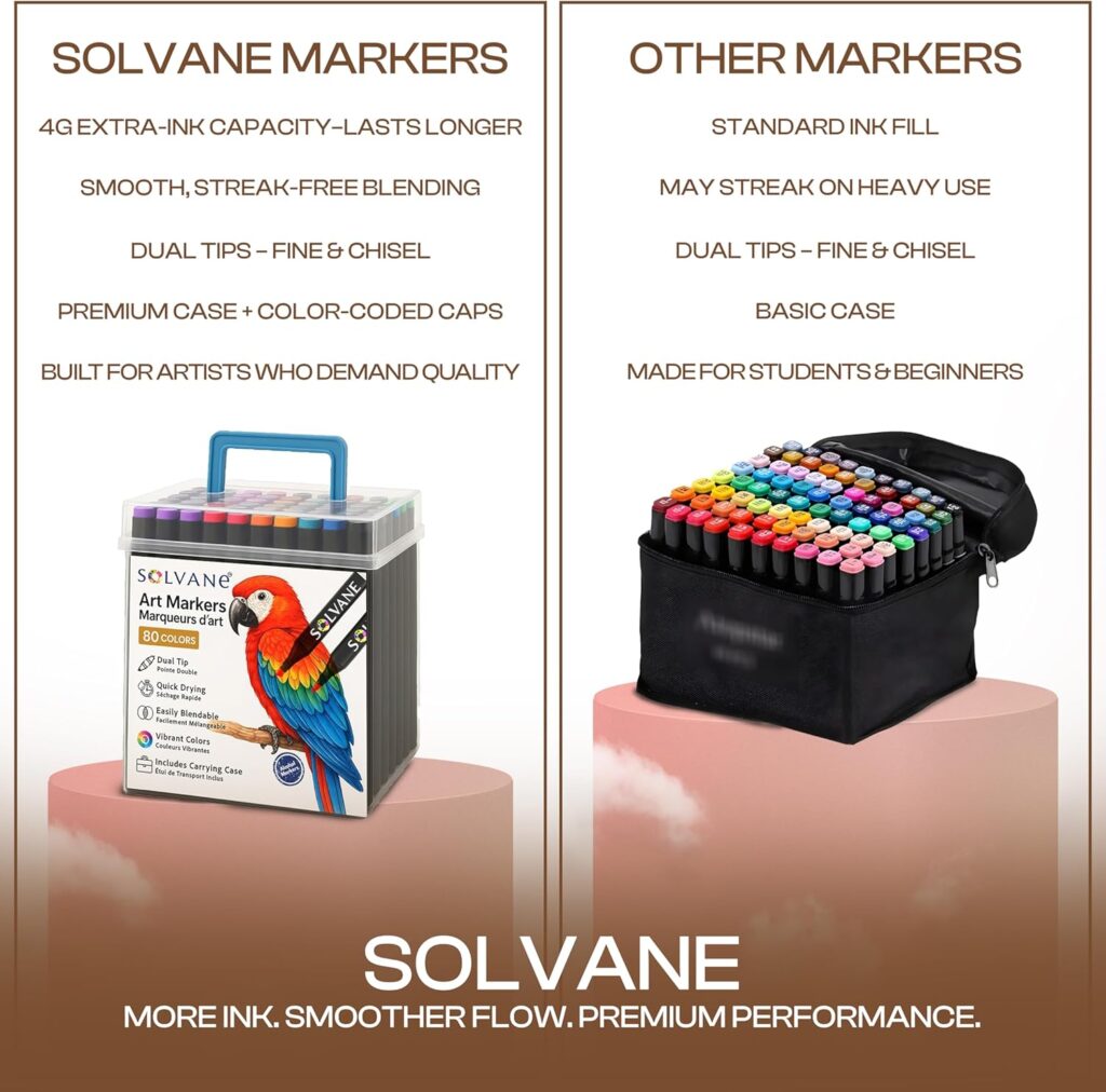 SHOP NOW ON AMAZON SOLVANE🎨 80 Blendable ColorsComfortable Grip Design, Dual Tip Design, High Ink Capacity, Vibrant & Consistent Colors, Wide Application SHOP NOW ON AMAZON Express your creativity with the SOLVANE 80 Colors Alcohol Markers SetDesigned for adult artists, designers, students, and hobbyists GET YOURS ON AMAZON